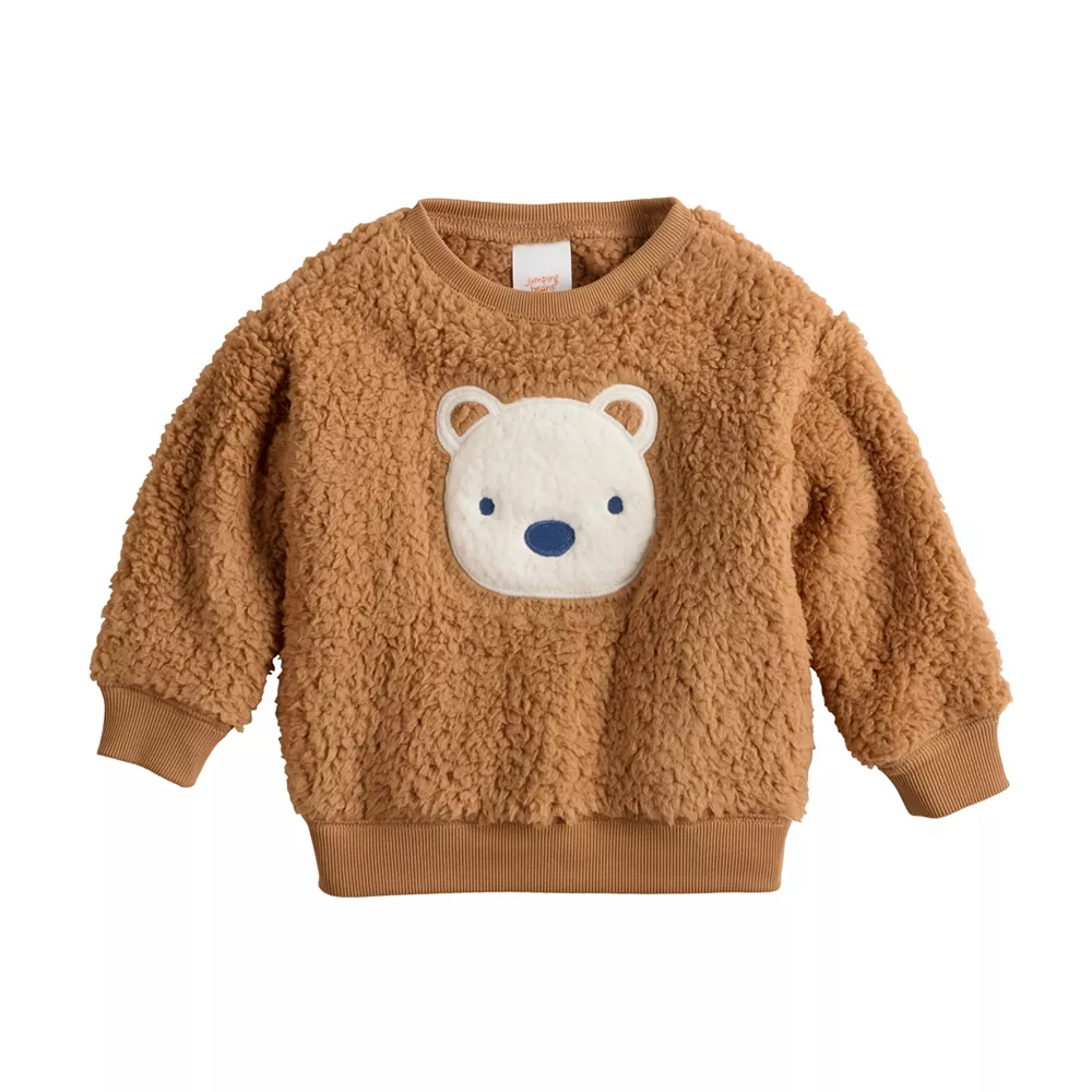 Give your little one’s winter wardrobe a cuddly refresh with this babies’ sherpa pullover crewneck sweatshirt from Jumping Beans.