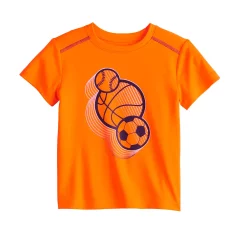 He’ll stay active in style in this boys’ Jumping Beans adaptive active tee.
