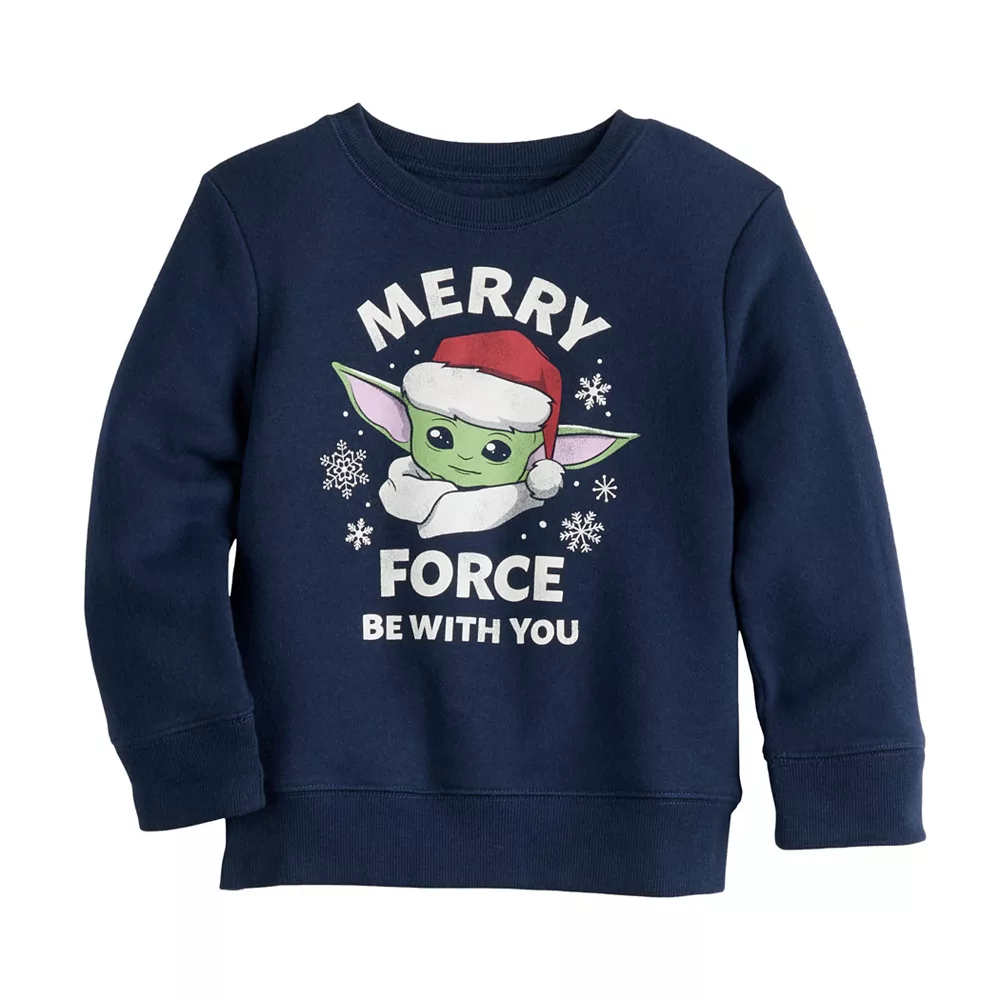 This boys’ “Merry” Grogu sweatshirt layers him in Jumping Beans fashion.