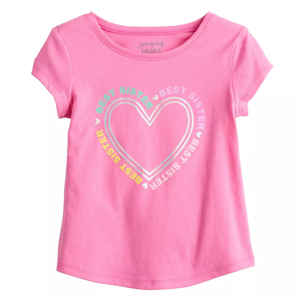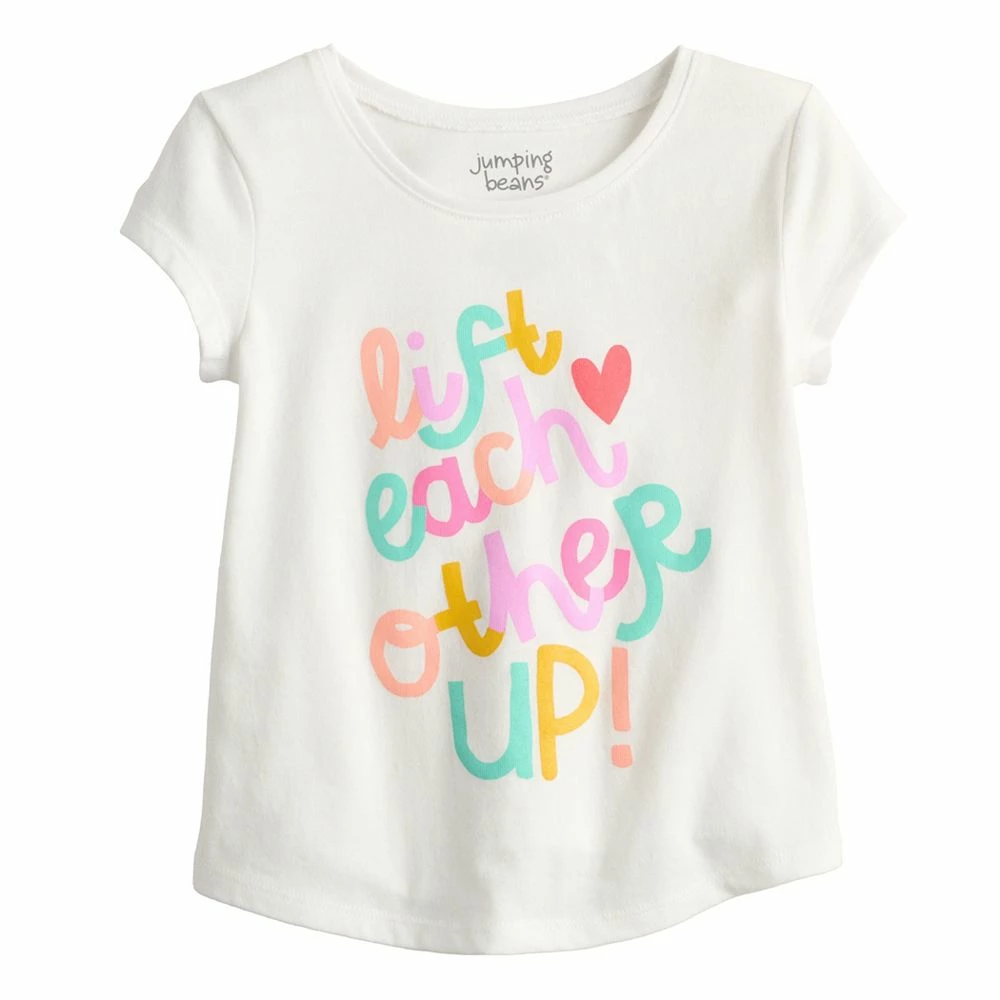A fun graphic and comfortable construction make this girls’ Jumping Beans tee the perfect choice for your playful kiddo.